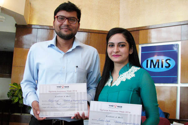 Aditya Kiran & Srabani Dash of IMIS have been awarded Third Prize (Rupees 2000 cash prize each) in Hindi and Odia Debate in Vigilance Awareness Week 2016 organised by Nalco on the topic “Promoting Integrity & Eradication of Corruption” held on 05.11.2016.