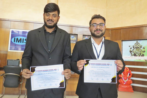 Mr. Souporno Debnath & Mr. Arun Mishra of PGDM Batch 2022-24 successfully presented a research paper titled “Exploring Digital Consumer Behaviour of Rural Consumers: A Study of FMCG Purchases in Khordha District of Odisha”, in the International Conference organized by Koustuv Business School(KBS), Bhubaneswar on 11th March, 2023.