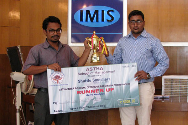 Arun Johnson and Sudhansu Sekhar Dash of Batch 2014-16 won the Runners up Trophy in Astha Inter Bschool Open Door Badminton Championship (Men’s Double) organised by ASTHA School of Management, Bhubaneswar