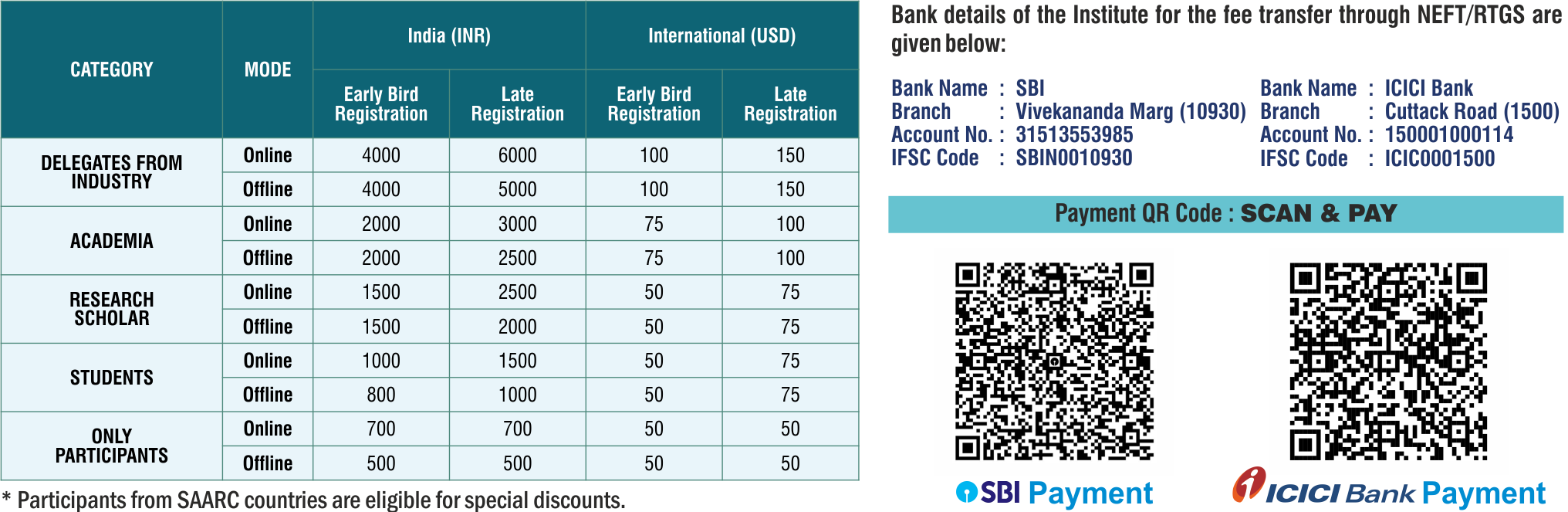 The registration fee includes access to sessions, Edited E-Book of extended abstracts, Certificate of Participation and Valedictory dinner. Please note that all conference and publication related documents will be shared over mail in soft copy version only.